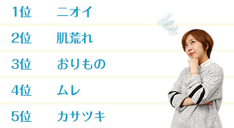 - ・生理中、ニオイが気になってスカートがはけないです。電車とか気をつかっちゃう。